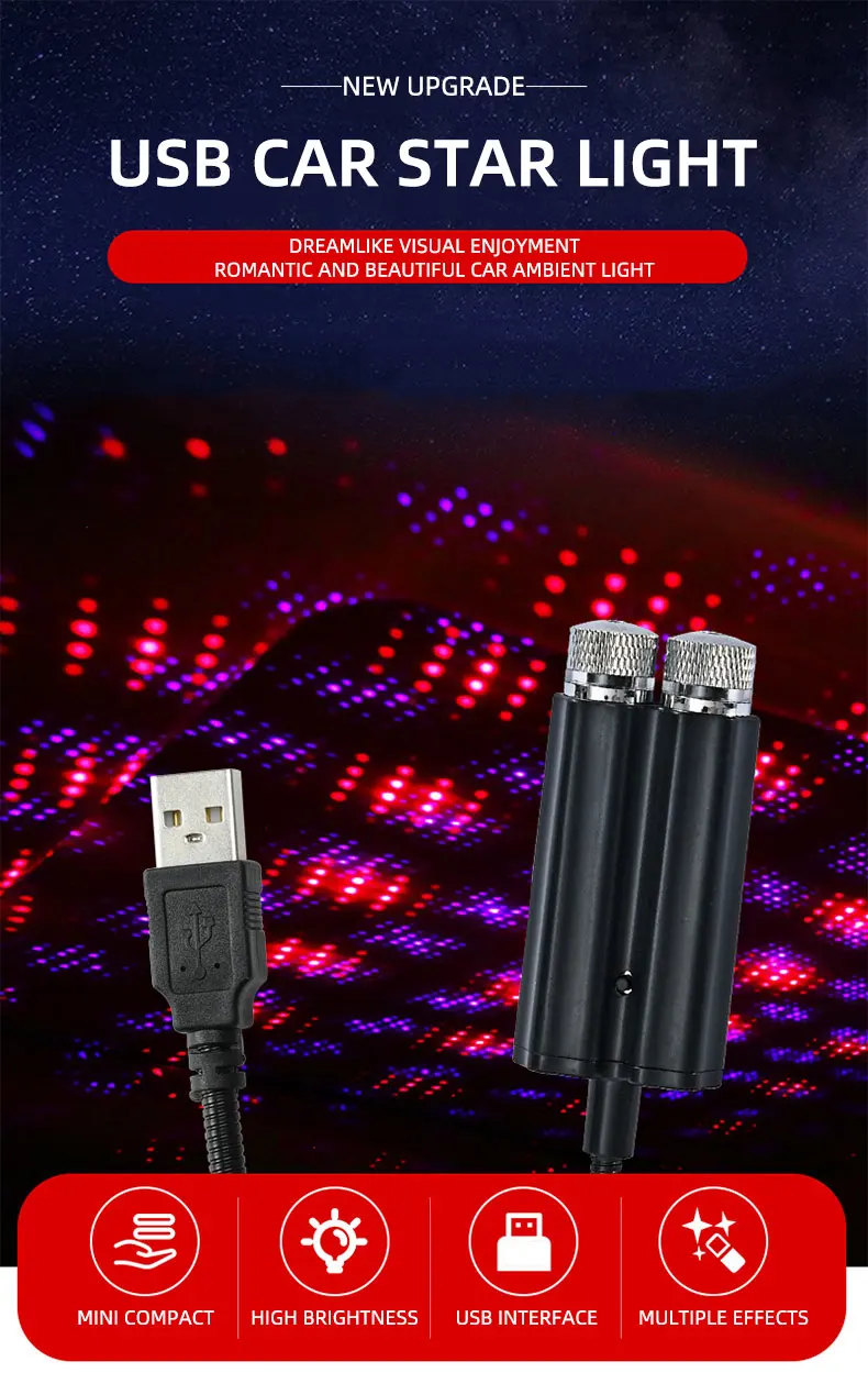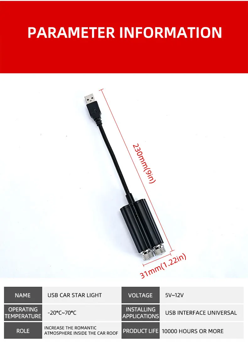 Easy Installation: The Car roof star lights are very easy to installation, with USB socket with 5V voltage, plug the USB socket to your car USB connector.